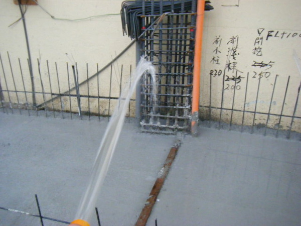 曾經有業主問我說為什麼不裝一組定時灑水器比較方便,不用每天自己這麼麻煩來澆水,老實說我以前也試過用定時灑水器,但總覺得沒有自己澆水來的紮實。有些事情還是要自己動手做才會有所「感覺」,譬如在澆水時我可以觀察樓板地坪那邊高那邊低,作為以後地磚施工的參考,也可以觀察一下哪裡有裂縫,以後防水施做時要特別加強等等;像掃地、撿垃圾等工地清潔的工作我也都習慣自己來,省錢倒是其次,我們監工的人不像工人一樣什麼事都動手做,在清潔工地或澆水時,其實就是我們觀察工地最好的時候;就跟很多醫學院老教授一樣,雖然地位崇高,但對於自己的病人還是親自問診、打針、給藥、抽血,因為這也是他們觀察病人最好的機會,不要以為打針給藥是護士的工作不屑一顧,也不要以為掃地撒水是粗工的工作一樣,很多東西是要摸過才會有感覺的,所以我寧願傳統一點,自己來。