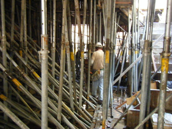 灌漿前的模板清潔,最重要的部位是柱子的地方,因為柱子是最重要的結構構件: