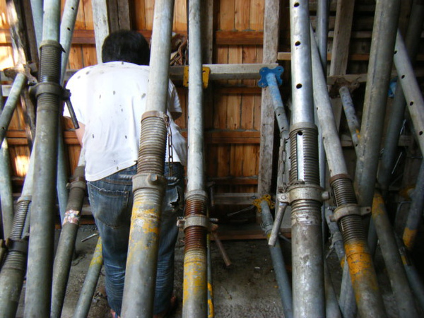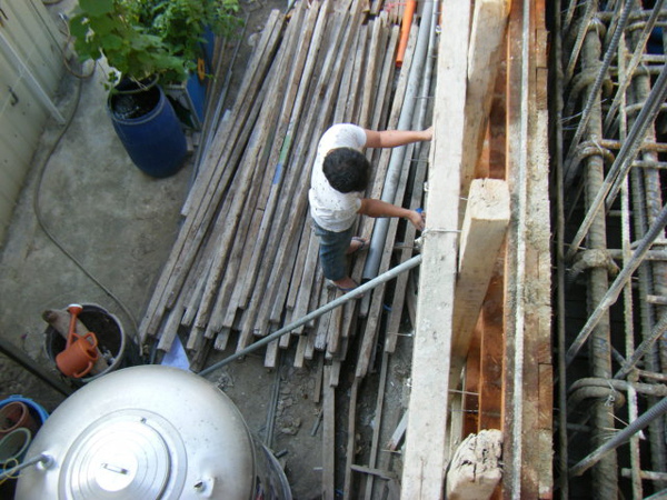 通常一棟房子灌漿前要認真澆水的話起碼要兩個小時的時間,澆完水後下面一定會變成如同照片中的模樣,好像水鄉澤國一樣。