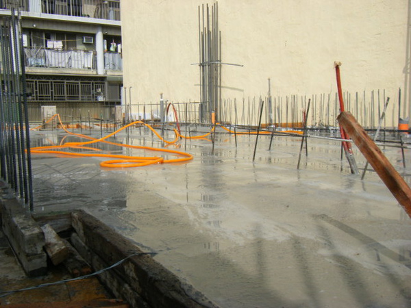 照例,灌漿完的隔天沒有人上工,只有我要一大早來工地澆水養護;先檢查看看灌漿成果如何: