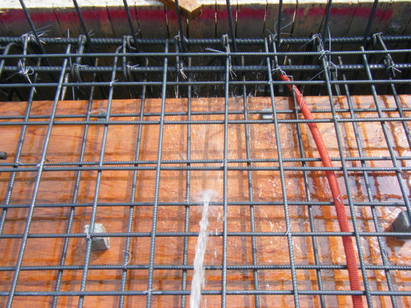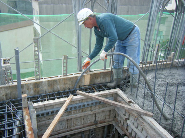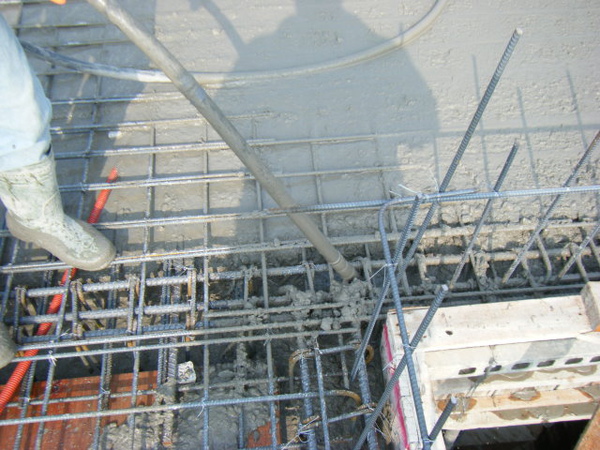 開始灌漿。灌漿時除了注重安全外,最重要的就是擣實要確實,尤其是在鋼筋密集處,例如樑、柱及其接頭,還有牆開口補強筋(例如窗戶四周)的地方,一定要要求充分擣實。
